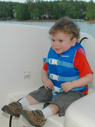 While Laura and Miles were up, we went out on the boat. It was Eloise’s first boat ride. Desmond has been before and enjoys it, he got to steer the boat with both his uncle Miles and his Grandpa, which he really enjoyed. Miles also went out wakeboarding, you can see him wakeboarding in the background of one of the pictures. It was a nice day for a boat ride since it was mid 80s out so the breeze on the water from the boat was quite nice.